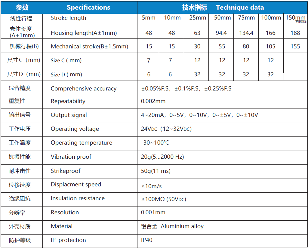 输出:1mv/V、0~±5/10V、4~20mA可选
